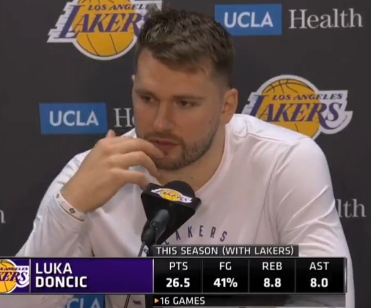 本赛季至今,东契奇在湖人(16场比赛)场均26.5分8.8篮板8助攻1.9抢断,命中率41%。