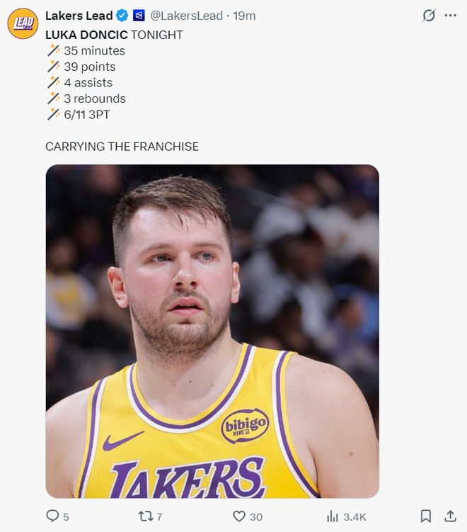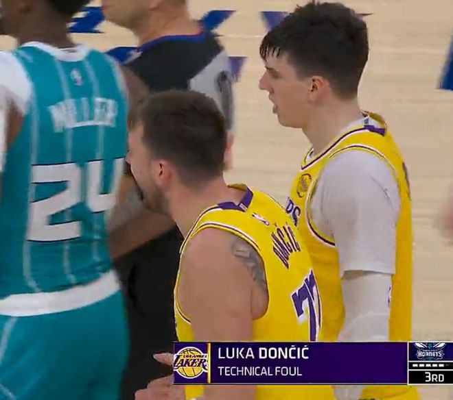 易边再战黄蜂连续命中三个三分球,东契奇还摊手质疑裁判,本场比赛已经多次摊手朝着裁判输出,东契奇吃了一个T。吃T后东契奇终于进入得分模式,他连拿15分帮助湖人缩小到4分打停黄蜂。东契奇拿到34分后扶着腰直接进入更衣室了。