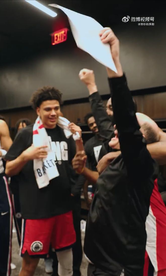 赛后,快船全队回到更衣室内庆祝6连胜,主教练泰伦-卢告诉大家,当天是助理教练杰夫-范甘迪的64岁生日。