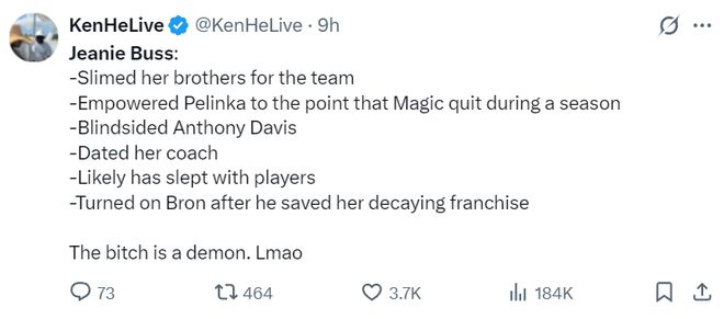 随后珍妮-巴斯委托TA记者萨姆-阿米克对ESPN的长文辟谣:鉴于LBJ为湖人所做的一切,他被卷入了我的家族纷争这太离谱了。ESPN的报道并不真实,对LBJ来说也太不公平。