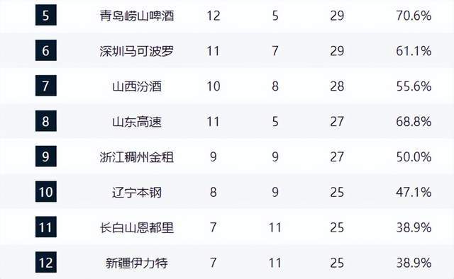 山西队本轮在客场输给深圳队,战绩变为10胜8负,排名第七。输掉这一战后,山西队的压力较大,接下来他们将面对广东队、北京队以及浙江队等强敌,想要全身而退恐怕没有那么容易。积分榜第9名属于浙江队,他们本轮输给北京队后,战绩变为9胜9负,胜率刚好过半。四冠王辽宁队则排在积分榜第10名,球队的战绩为8胜9负。吉林队以7胜11负的战绩位列第11名。