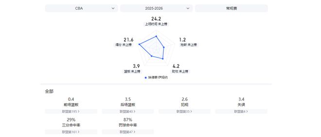 17次出场后,他场均21.6分3.9篮板4.2助攻1.2抢断,投篮命中率47.2%,三分命中率29.5%