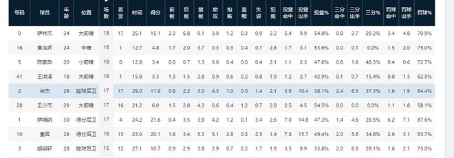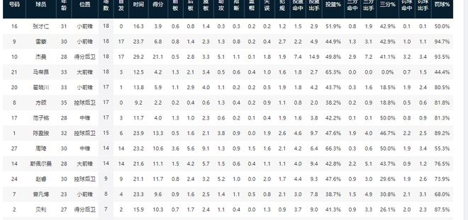 18轮过后,关键时刻数据方面,北京男篮四名外援中,杰曼以累计20分的关键得分表现,位列队内外援首位、联盟第10位。