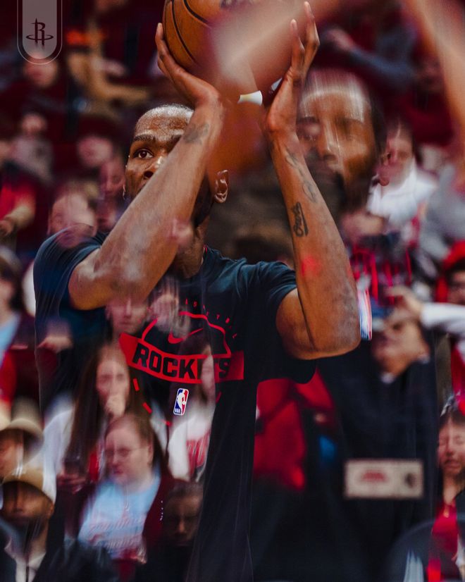 火箭队首发阵容:汤普森、伊森、杜兰特、史密斯、申京