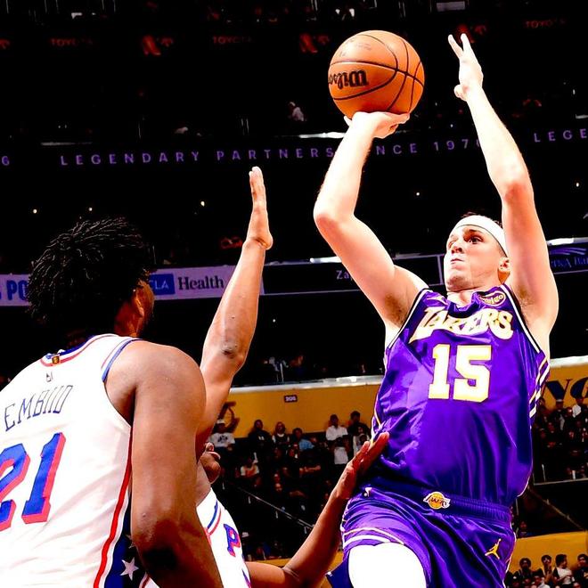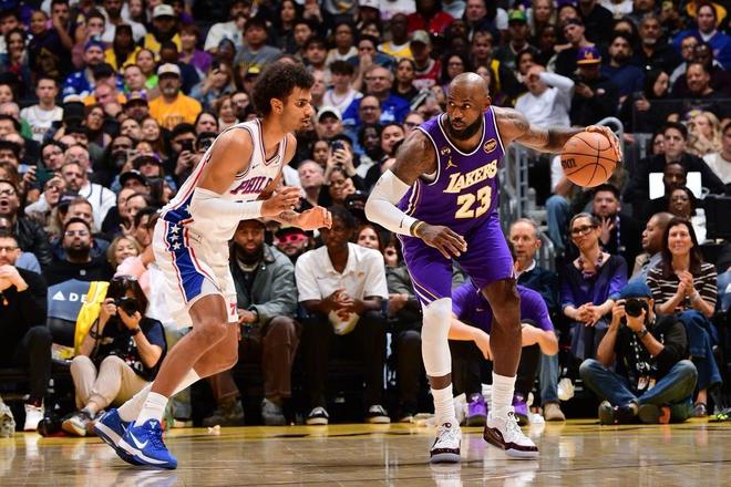 末节决战,湖人抢断,里夫斯轰进压哨三分球。恩比德外线打铁,里夫斯又中远投,恩比德失误,里夫斯2罚全中,场上响起了“MVP”的呼声。埃奇库姆远投打铁,雷迪克挑战判罚成功,范德比尔特送出大帽。范德比尔特连续犯规,马克西抢断詹姆斯后2罚全中。斯马特助攻范德比尔特暴扣,詹姆斯强势上篮得手,紫金军团打出了12比2的攻势,纳斯请求暂停。乌布雷罚进2球,詹姆斯助攻斯马特轰进3分球,马克西抛投取分。