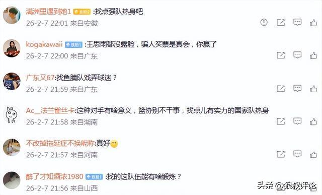 这种对手有啥意义,篮协别不干事,找点儿有实力的国家队热身。