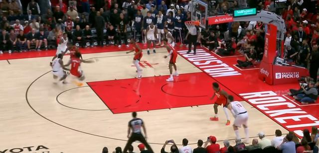 接下来火箭的进攻回合,则是直接把乌度卡按在地上揍了。同样的边线发球战术,全世界也都知道这球要给杜兰特。伦纳德紧贴杜兰特,虽然杜兰特通过申京的掩护甩开了伦纳德,但防守申京的小琼斯提前进行了换防,依旧死死挡住杜兰特,后者根本没有接球机会。