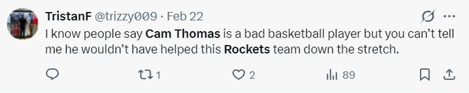 火箭球迷也觉得斯通没有追逐托马斯是败笔:很多人说托马斯投篮技术不佳,但在比赛的关键时刻,他的得分能力肯定能帮助到这支球队。