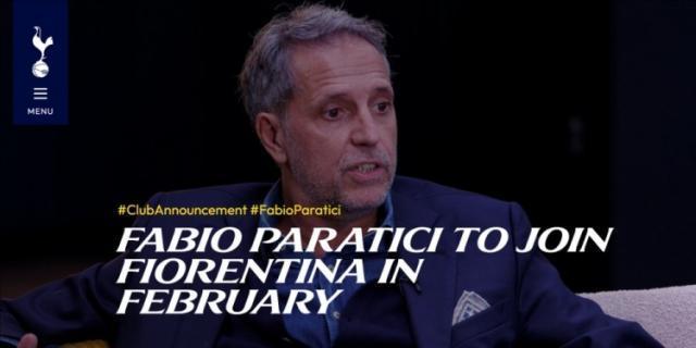 热刺官方:体育总监帕拉蒂奇将于2月离职,加盟意甲球队佛罗伦萨