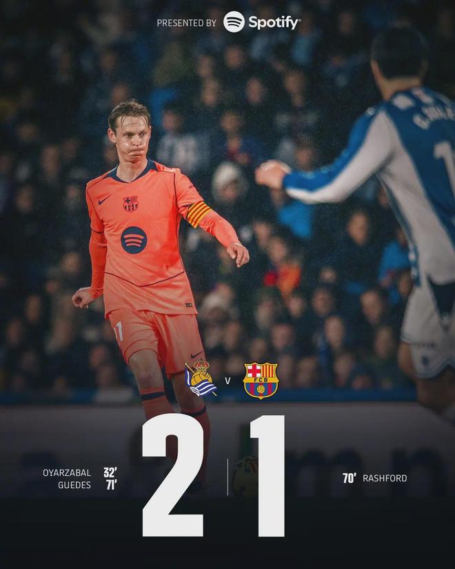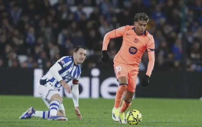 第32分钟,格德斯右路精准传中,奥亚萨瓦尔后点凌空爆射破门,皇家社会终于取得领先。而在上半场补时阶段,亚马尔在禁区内被踢倒获得点球,却又因越位在先被取消。