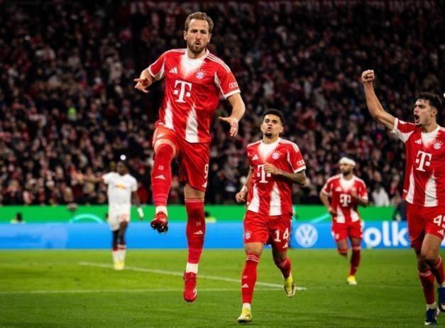 本场比赛仅仅进行到第22分钟,场上僵局就被打破。小将卡尔在禁区内上演精彩连续过人后被放倒,裁判果断判罚点球。站在12码前的凯恩一如既往地冷静,稳稳将球送入网窝,帮助拜仁1比0领先。这只是开胃菜,短短4分钟后,第26分钟,凯恩在禁区外接到迪亚斯-路易斯的传球,稍作调整后轰出一脚精彩绝伦的远射,皮球直窜死角,场上比分改写成2比0,帮助拜仁锁定胜局。