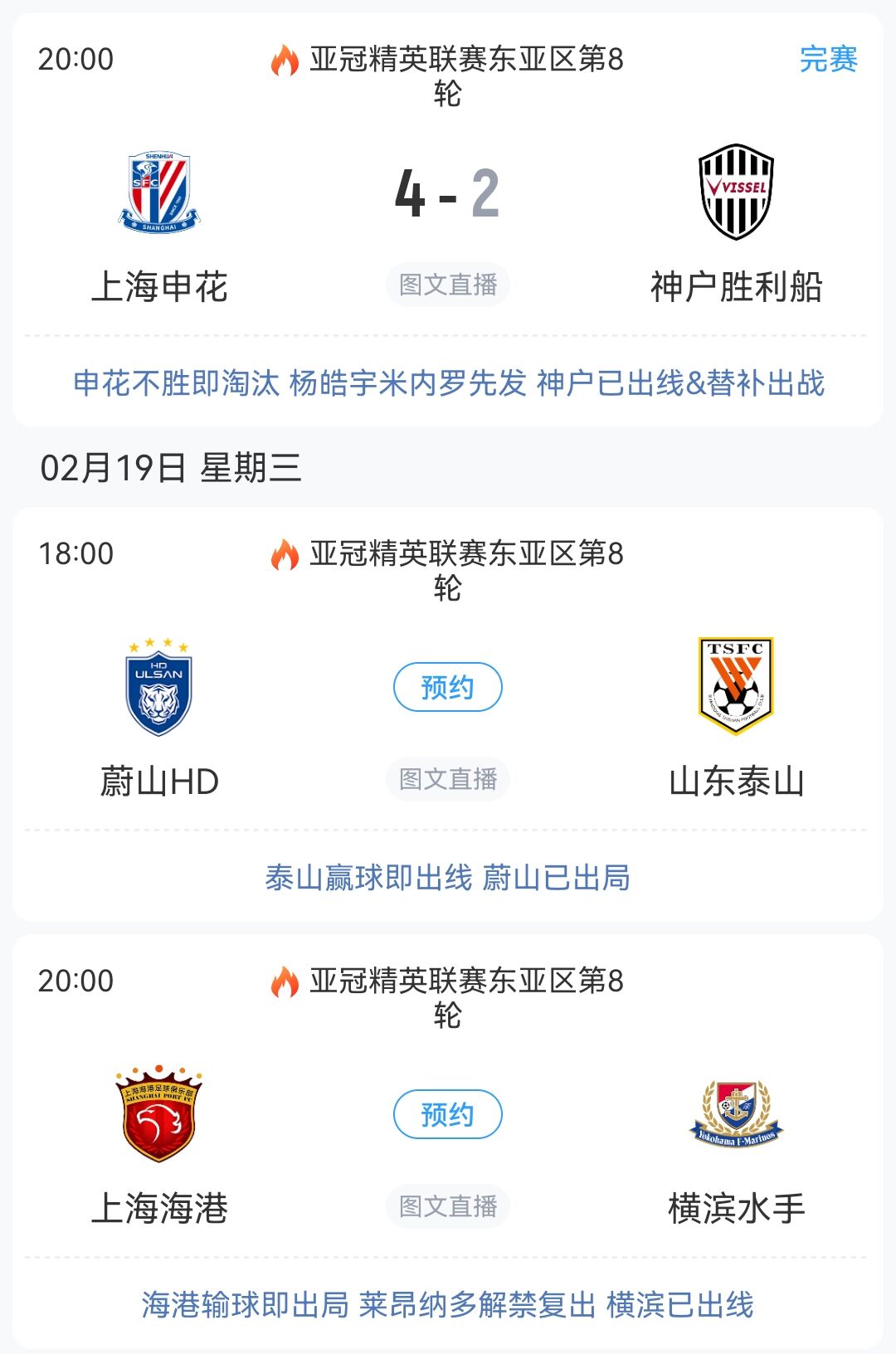 02月18日讯 亚冠精英联赛东亚区第8轮结束多场比赛,其中申花主场战胜神户胜利船,先赛积10分,暂时升至积分榜第7位,进入晋级区。